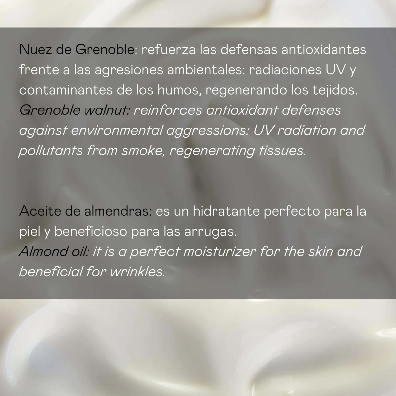 Crema facial Anti-edad, con nuez de Grenoble y protección solar.