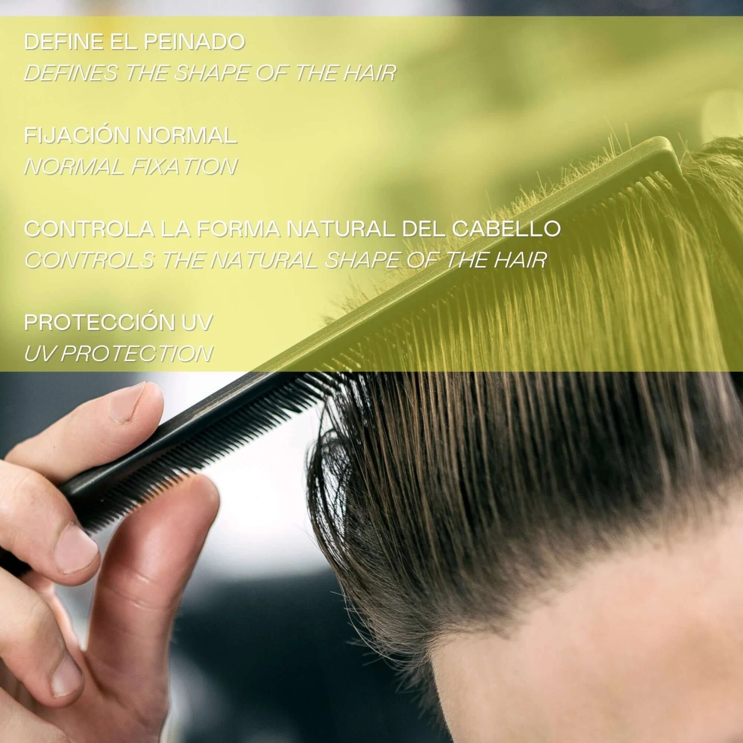 Esta cera para el cabello define el peinado, con una fijación normal, controlando el mismo de una forma natural y aportando brillo y textura. Tiene un acabado mate y es muy fundente para facilitar su aplicación. Además, ejerce una acción protectora de la fibra capilar frente a las radiaciones UV del sol. Ha sido formulada con Panthenol, que proporciona brillo al cabello, y un efecto reparador y acondicionador del mismo. Cuenta con la certificación Halal y es vegana.