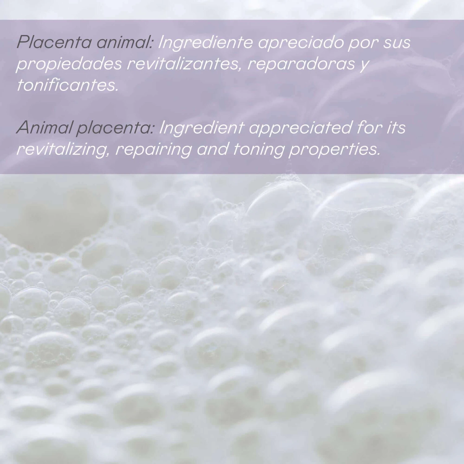 - Su componente principal, la placenta es un ingrediente apreciado por sus propiedades revitalizantes, reparadoras y tonificantes.