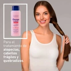 Recomendado para el tratamiento de alopecias y de cabellos frágiles y quebradizos, este champú actúa nutriendo el cuero cabelludo, por lo que lo fortalece, estimula su crecimiento y favorece la actividad del folículo piloso.