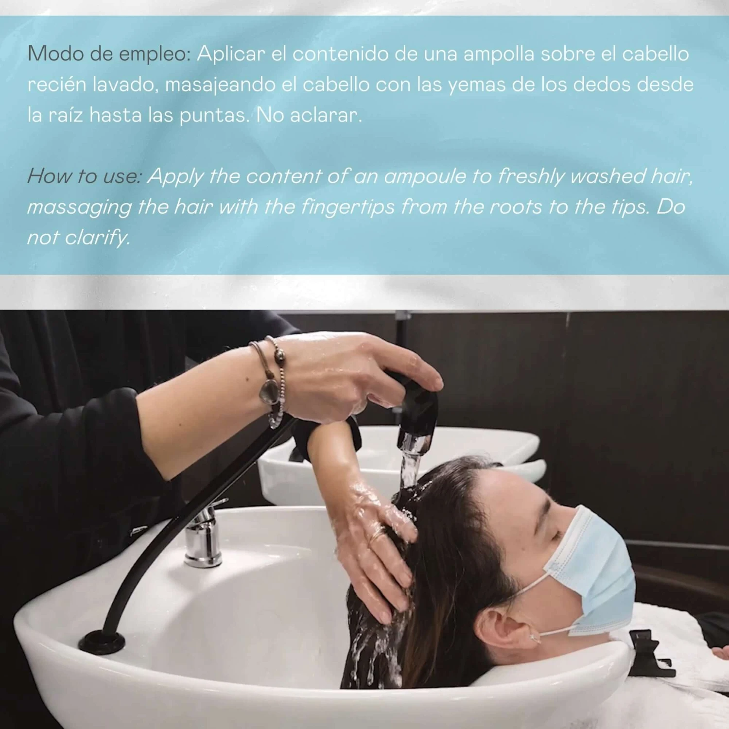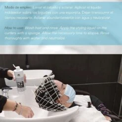 Cosmético para uso profesional en peluquerías que neutraliza el efecto del líquido de permanente sobre el cabello y recompone la estructura de la fibra capilar después de su acción moldeadora. Es un producto vegano