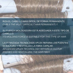 Este cosmético es vegano y para uso profesional en peluquerías riza el cabello más difícil de forma permanente. Su fuerza moldeadora está adecuada al pelo que es más complicado de manejar. La avanzada Tecnología VPlex contiene cisteinas en forma de dímero (cistina) que facilitan la formación de puentes disulfuros, y aporta un extra de fortaleza y brillo al cabello sin alterar el color. Como resultado, revitaliza la fibra capilar y se repara la cutícula dañada del cabello, mientras que el colágeno y el azuleno protegen el cuero cabelludo.