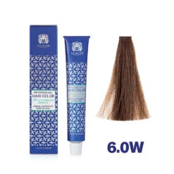 Tinte 6.0W Rubio Oscuro Cálido recomendado para el uso por profesionales de peluquería.