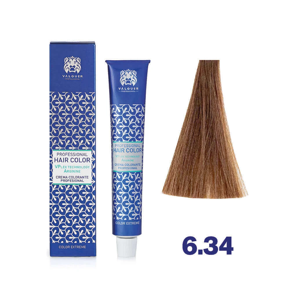 Tinte 6.34 Tierra recomendado para el uso por profesionales de peluquería.
